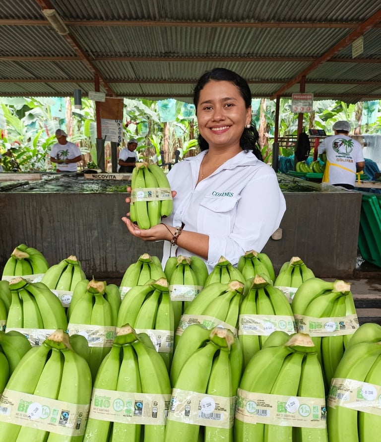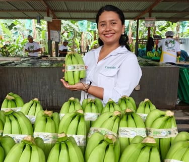 Entendemos que el valor del banano empieza en quien lo cultiva, por eso nuestra responsabilidad va más allá de solo el comercio, reconocemos el trabajo y esfuerzo de cada uno de nuestros socios, por eso lo pagamos justo y a tiempo. practicamos la sostenibilidad a través del comercio justo con las certificaciones Fairtrade, orgánico.