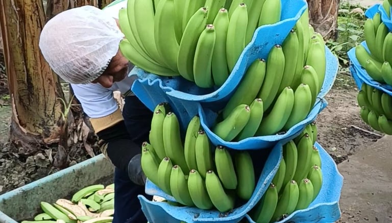 Banano fresco y de calidad, cultivado con los mejores procesos de calidad, listo para su distribución.