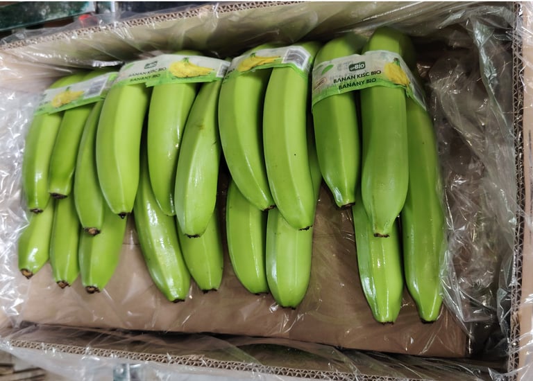 Desde la cosecha, nuestra fruta inicia un proceso técnico y controlado orientado a exportación. Proveniente de un cultivo orgánico responsable, cada racimo es trasladado a la planta de proceso donde se realiza la clasificación, lavado y acondicionamiento bajo estrictos controles de higiene y trazabilidad. El empacado se ejecuta conforme a las especificaciones del mercado de destino, garantizando cumplimiento normativo, uniformidad y adecuada conservación durante el transporte. En cada etapa aplicamos parámetros de calidad definidos que aseguran un proceso eficiente, responsable y alineado con estándares internacionales.